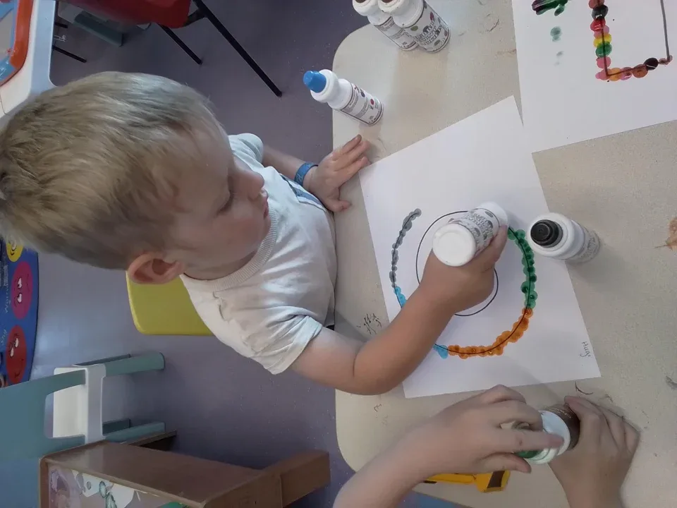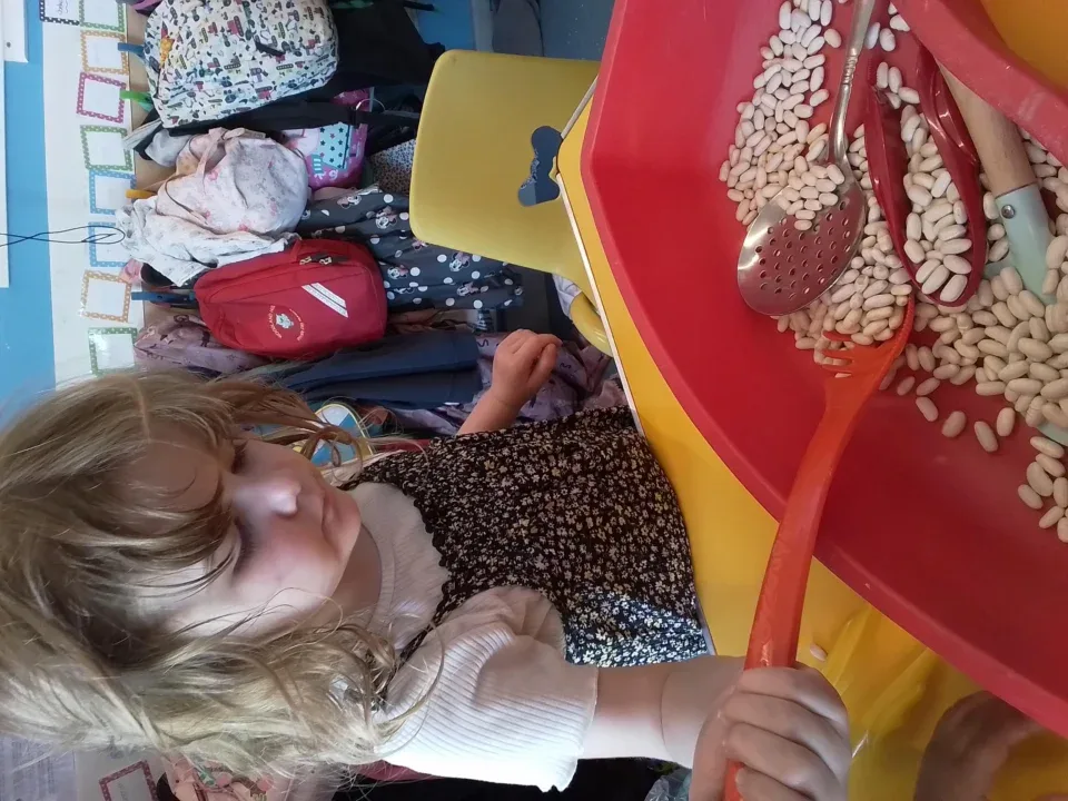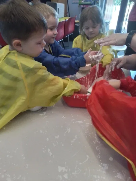 We have been exploring gloop, making shapes with playdough, and scooping up coloured rice and pasta then trying to pour it into different sized containers.