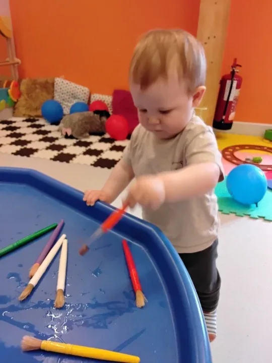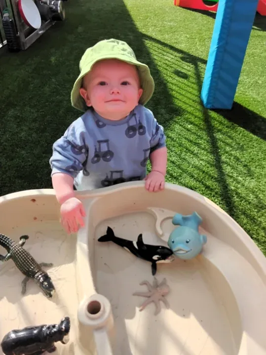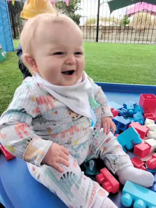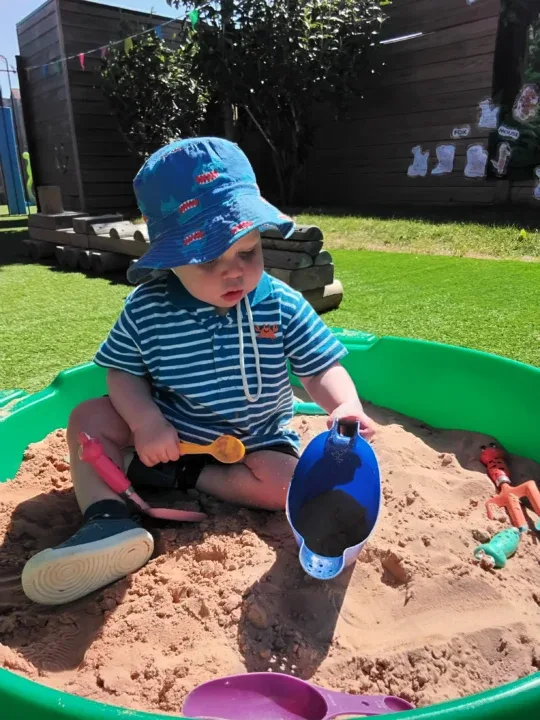 This month in Little Twinkles, we have welcomed some new children into the room, building on making positive relationships. All the children have enjoyed the sand pit outside, learning to use tools and scoop, building on our hand eye coordination and fine motor skills whilst also starting to learn to take turns. We have enjoyed splashing around in the water tray with water animals, using our senses and exploring temperatures in the warm weather with cold water. In the room we have been exploring playdough and engaging in hand and foot painting, learning to be creative and about mark making with adult support and verbal encouragement. We have been exploring and enabling the children to develop their independence during their play and when eating, learning to feed themselves. We have celebrated VE day and Pyjamarama day giving the children an insight into understanding the world and the people around us, also helping to develop our social skills.