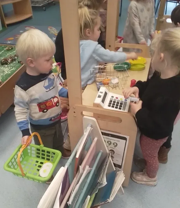 We also set up a shop role play activity in the role play area for the children to use. They were taking it in turns to be the shopkeeper and the customer, helping each other to find different items and then count the items up before they ‘paid’ for them.