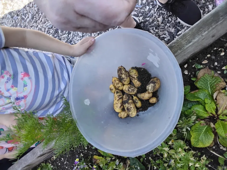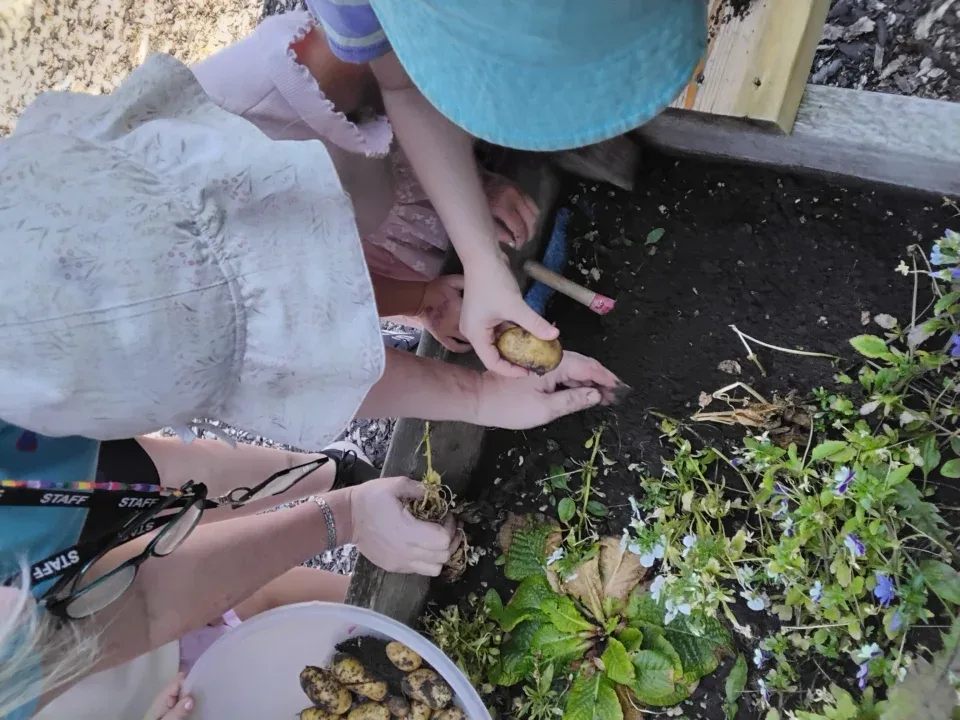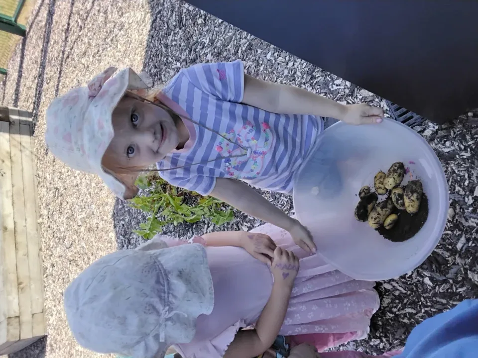 Over the past few weeks, Super Stars have been preparing and practising for our graduation ceremonies that took place last week. The children showed lots of self-confidence and sang their graduation song beautifully. It was a lovely send off and end to the summer term. This week we have been harvesting our vegetables that we started to grow a few months ago. The children have really enjoyed digging for potatoes and pulling the carrots up. We have even grown a few sunflowers and pumpkins as well, the children have been so excited to see what the plants have grown into. This reinforces changes, i.e. seeds turning into plants, and develops their understanding of the world. We have also made the most of the nice weather, spending lots of time playing outside; we had a beach party with lots of water play and practised moving in a variety of ways on the big wooden apparatus, developing our gross motor skills.