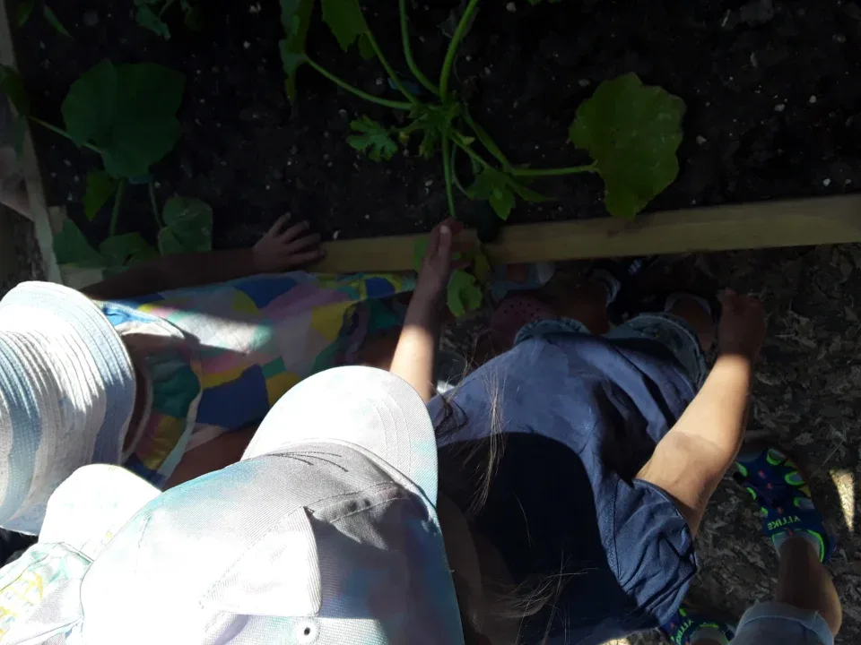 Pre-school explore the vegetable patch