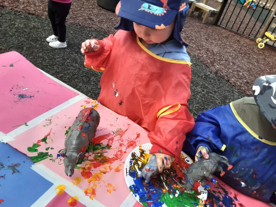 This week the Little Stars have enjoyed exploring the mud with garden tools to find dinosaurs, painting with the animals to make footprints, talking about the animal names and the sounds that they make.